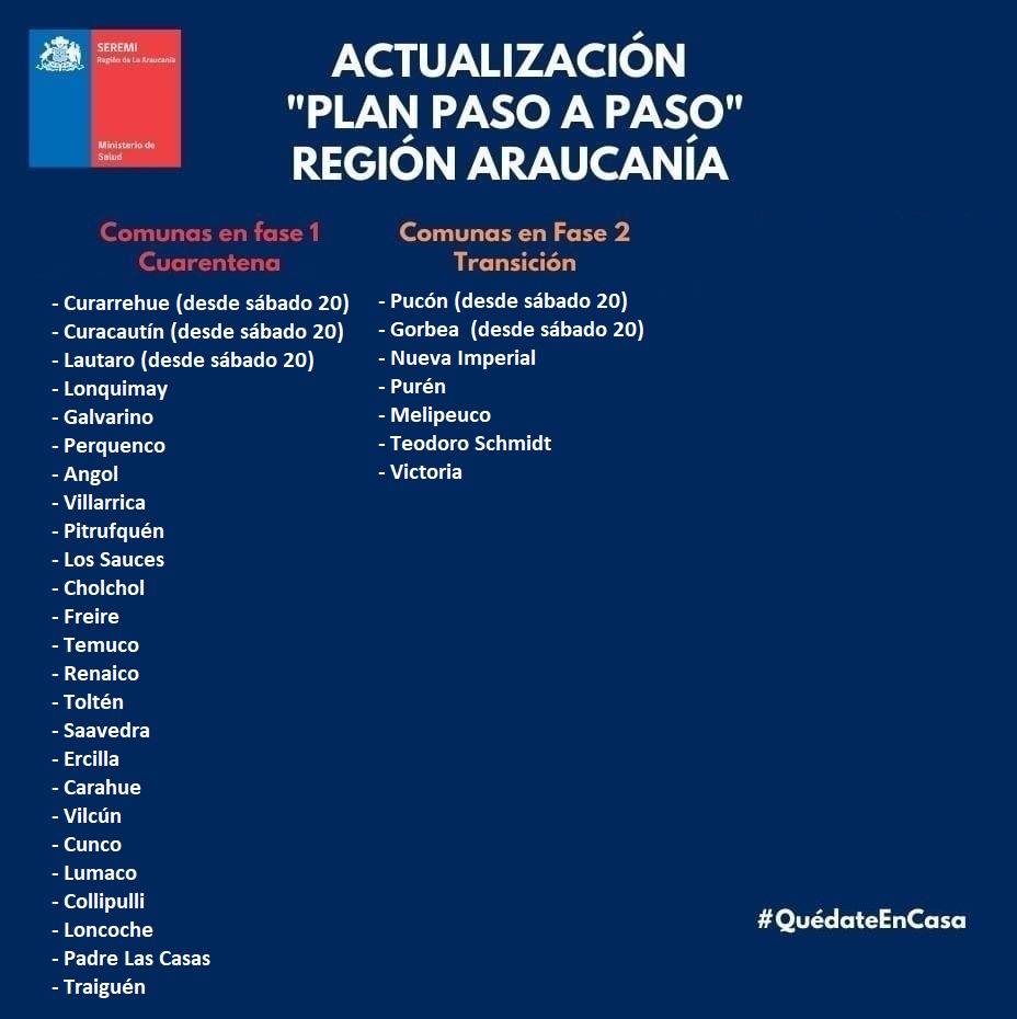 Los cambios designados para La Araucanía comprenden el avance y retroceso de 5 comunas.