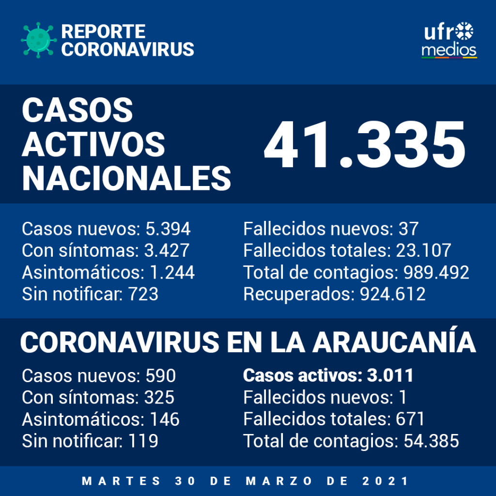 Acorde al último reporte entregado por la seremi de Salud este martes, La Araucanía suma 617 fallecidos por COVID-19 y la cifra más alta de casos activos con 3.001.