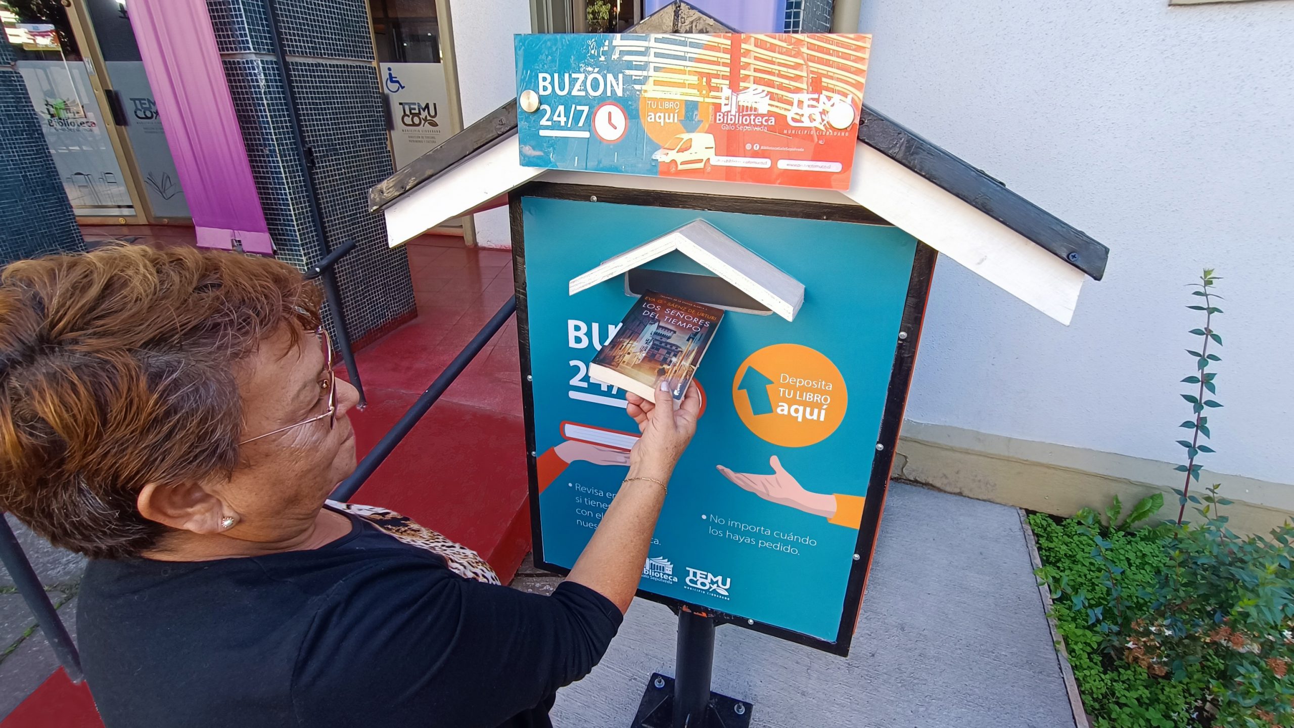 buzón de entrega 24/7 en el frontis de la biblioteca central.