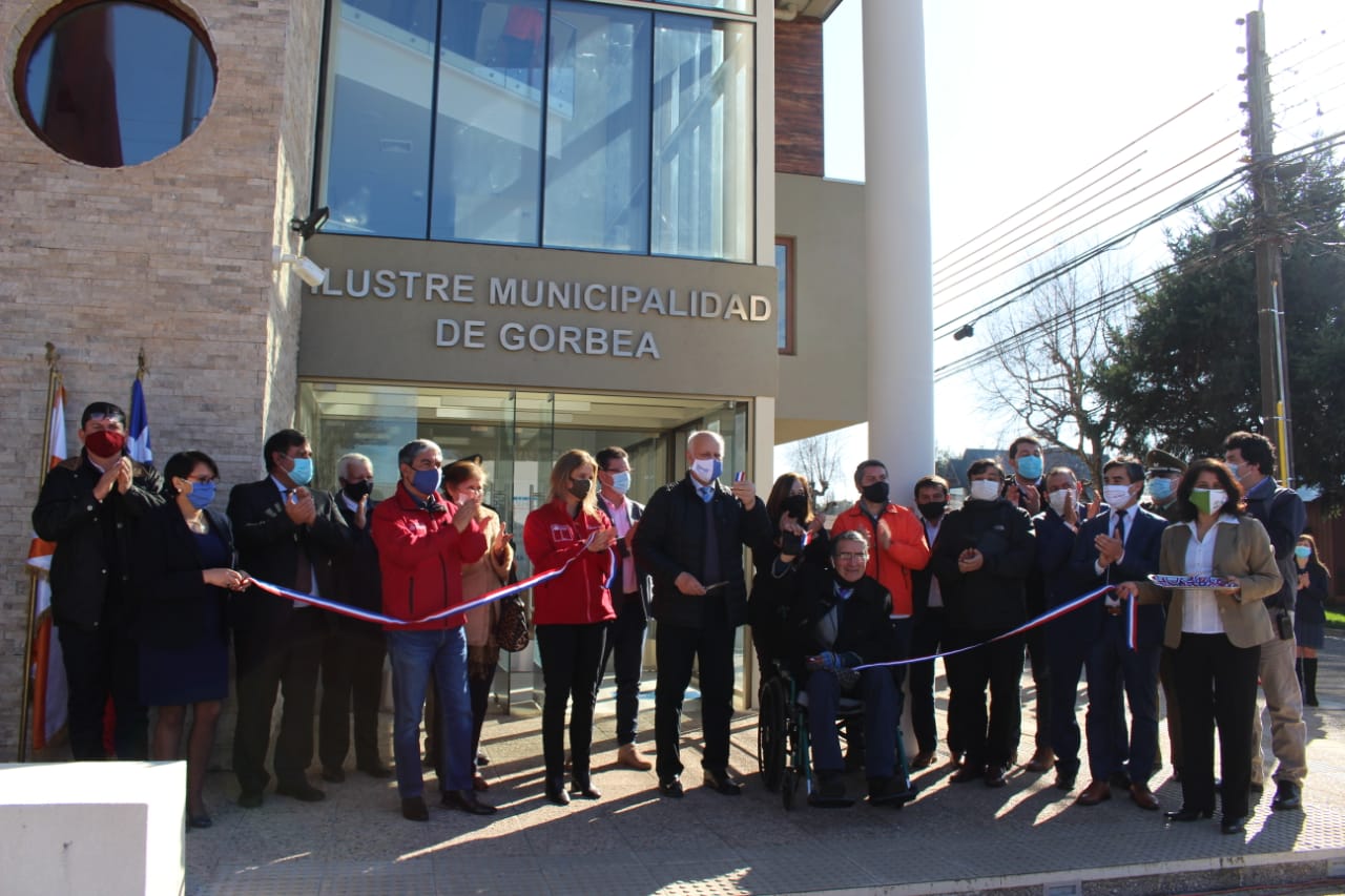 En un hecho histórico en la comuna de Gorbea, se dieron cita en el frontis del nuevo edificio consistorial, con las respectivas medidas sanitarias, autoridades regionales y comunales, miembros del consejo de la sociedad civil y presidentes de uniones comunales, además de la presencia de los funcionarios municipales de la comuna, para efectuar una emotiva ceremonia inaugural en la que consistió en corte de cinta y descubrimiento de placa con bendición de autoridades religiosas Fueron más de 3 mil ochocientos millones de pesos en inversión a través de fondo nacional de desarrollo regional FNDR por parte de consejo regional de La Araucanía para construir esta infraestructura de 2.517 mts2 en un plazo de 420 días de reposición, donde destacan los imponentes tres pisos con amplias oficinas, ascensor para vecinos en situación de discapacidad, sala de conferencias con capacidad para 50 personas, espacios para el registro civil y correos de chile. En la ocasión Guido Siegmund, alcalde de la comuna expresó su alegría y emoción al destacar que un primero de septiembre quedará en la historia de la comuna de Gorbea, y enfatizó: “Se logra una obra que es fundamental para el desarrollo de nuestra comuna, ya que los municipio pasan a hacer la institución más importante dentro de cada comuna, especial en las pequeñas ya que no hay otros servicios, esto es un tremendo adelanto que nos permite en hacer una mejor atención a los vecinos y comodidad a los funcionarios municipales”. Esta nueva infraestructura viene a unificar todas las oficinas municipales de Gorbea y reemplaza al antiguo edificio con más de 50 años donde no cumplía con los actuales estándares de construcción, además próximamente permitirá sumar nuevos servicios para los habitantes de la comuna del Salto Donguil.
