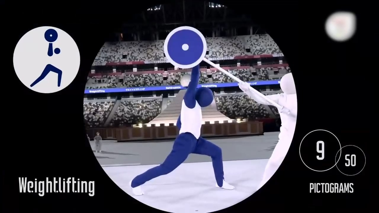 Con una destacada puesta en escena, un grupo de artistas realizó una representación en vivo y live-action de los 50 pictogramas, que representan todas las disciplinas deportivas de los Juegos Olímpicos de Tokio 2020.